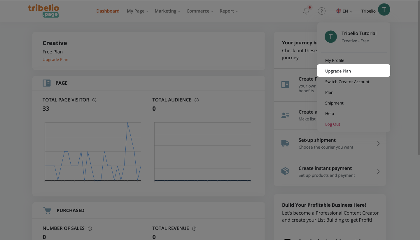 Jika kamu mau membandingkan plan, kamu bisa klik menu "**Compare Plan**" pada menu Upgrade plan, atau kamu bisa klik [disini](https://tribeliopage.com/plan/compare)